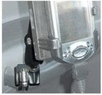 Características: Sistema de anclaje abrazadera. Dos tamaños de abrazadera permiten sujetar el sistema a barras y asas de diferentes diámetros (entre 12,7 y 50,0 mm.). La base/anclaje redonda -B-202- se fija mediante tornillos a cualquier so